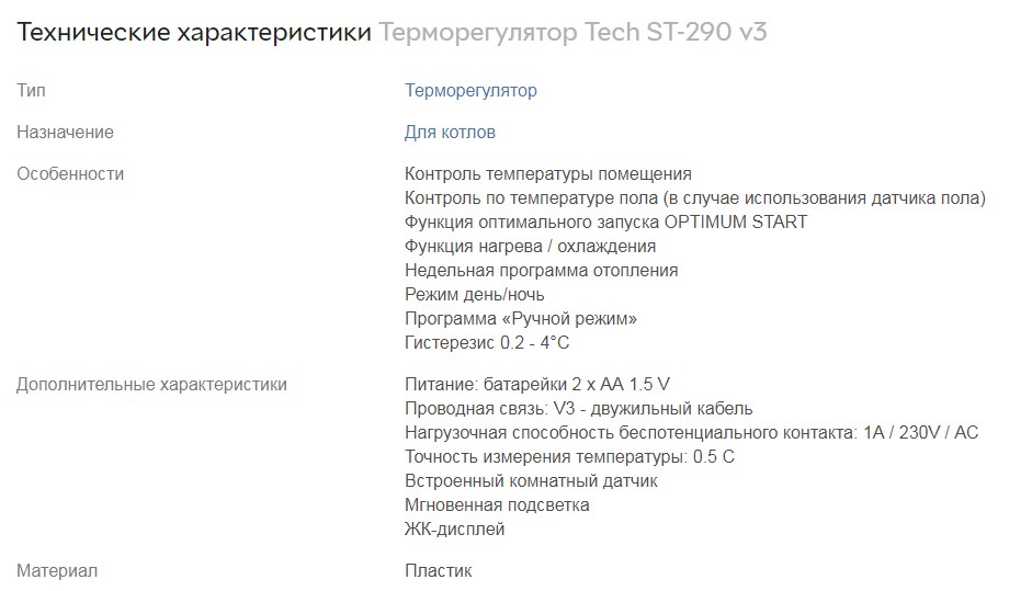 TECH ST-290 v3 – программируемый 2-х позиционный регулятор, предназначен для управления нагревательным агрегатом. Регулятор ориентируется на установленную оператором температуру нагрева воздушных масс в помещении. После того, как температура в доме, комнате достигнет нужного уровня программатор посылает импульс котлу или другому нагревательному агрегату на отключение.