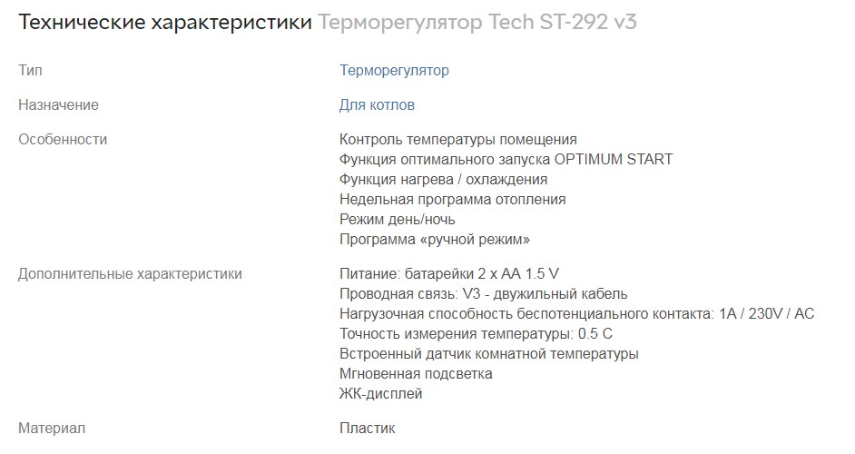 TECH ST-292 v3 – аппарат, предназначен для контроля нагревательным агрегатом. Задача контроллера заключается в мониторинге, съеме температуры нагрева воздуха в помещении. После того, как она достигнет заданной оператором величины, он посылает импульс котлу на включение или отключение.
